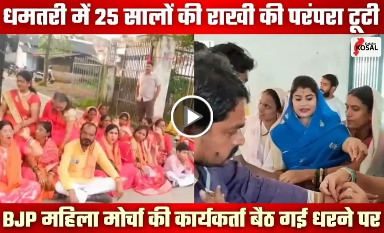 Raksha Bandhan 2025: धमतरी से रक्षाबंधन से पहले एक हैरान करने वाली खबर सामने आई है। बीजेपी महिला मोर्चा की कार्यकर्ता हर साल की तरह इस बार भी सीएएफ कैंप में तैनात जवानों की कलाई पर राखी बांधने पहुंची थीं, लेकिन इस बार परंपरा टूट गई। महिलाओं को कैंप से यह कहकर लौटा दिया गया कि कार्यक्रम की उन्हें कोई सूचना नहीं मिली है। इससे नाराज महिला कार्यकर्ताओं ने नगरी एसडीओपी कार्यालय के बाहर धरना दे दिया।