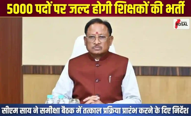 छत्तीसगढ़ के युवाओं के लिए खुशखबरी: 5000 शिक्षकों की होगी भर्ती, सीएम साय ने दी हरी झंडी, फरवरी तक जारी होगा विज्ञापन, व्यापमं लेगा परीक्षा