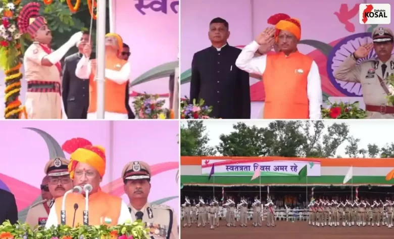 रायपुर। Independence Day 2025: छत्तीसगढ़ ने आज 79वां स्वतंत्रता दिवस पूरे गर्व और सम्मान के साथ मनाया। राजधानी रायपुर के पुलिस परेड ग्राउंड में आयोजित मुख्य समारोह में मुख्यमंत्री विष्णुदेव साय ने ध्वजारोहण किया। इस मौके पर उन्होंने परेड की सलामी ली और शहीदों को श्रद्धांजलि अर्पित की।