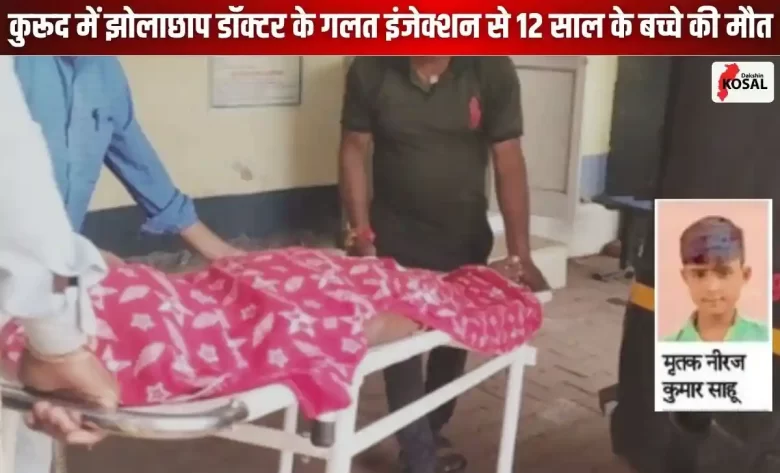 कुरूद (धमतरी)। Kurud Child Death Case: डांडेसरा गांव के एक 12 वर्षीय बच्चे की झोलाछाप डॉक्टर द्वारा इंजेक्शन लगाने के बाद मौत हो गई। मृतक के परिजनों ने इलाज में लापरवाही और गलत दवा देने का आरोप लगाते हुए स्थानीय मेडिकल स्टोर संचालक पर गंभीर आरोप लगाए हैं। घटना के बाद इलाके में आक्रोश है। पुलिस ने मामले की जांच शुरू कर दी है और आरोपी फरार है।