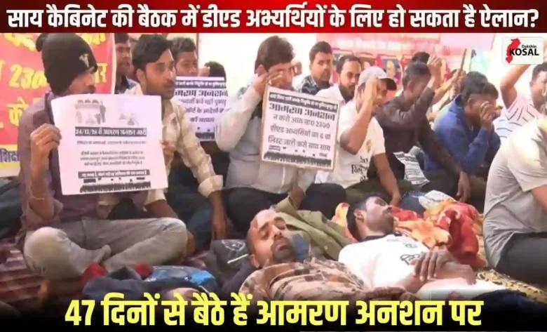 छत्तीसगढ़ के सहायक शिक्षक भर्ती 2023 के डीएड (D.Ed.) अभ्यर्थियों के लिए 11 फरवरी का दिन बेहद निर्णायक साबित हो सकता है। मुख्यमंत्री विष्णुदेव साय की अध्यक्षता में होने वाली कैबिनेट बैठक में इन अभ्यर्थियों की नियुक्ति को लेकर अहम फैसला आने की संभावना है। पिछले 47 दिनों से अपनी मांगों को लेकर आमरण अनशन पर बैठे युवाओं को स्कूल शिक्षा मंत्री से हुई चर्चा के बाद यह उम्मीद बंधी है कि सरकार जल्द ही भर्ती की छठी (6वीं) सूची जारी करने पर मुहर लगा सकती है।