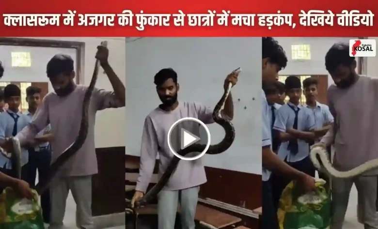 Python Rescue Video: स्कूल में हड़कंप: क्लासरूम में बैठा था विशालकाय अजगर, फुंकार सुनकर भागे छात्र