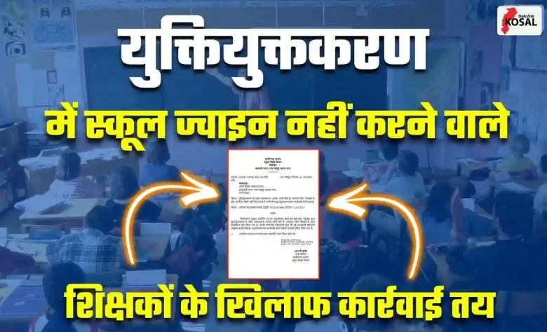 रायपुर: CG Rationalization: छत्तीसगढ़ स्कूल शिक्षा विभाग ने युक्तियुक्तकरण में स्कूल ज्वाइन नहीं करने वाले शिक्षकों के खिलाफ कार्रवाई का आदेश जारी कर दिया है। जारी आदेश के अनुसार स्कूल ज्वाइन नहीं करने वाले अतिशेष शिक्षकों पर करवाई होगी। स्कूल शिक्षा विभाग ने कार्रवाई करने की मंजूरी दे दी है।