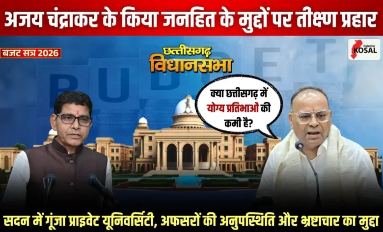 CG Legislative Assembly Budget Session: छत्तीसगढ़ बजट सत्र के दौरान उस वक्त सन्नाटा खिंच गया जब भाजपा के वरिष्ठ विधायक अजय चंद्राकर ने प्रदेश की उच्च शिक्षा व्यवस्था पर अपनी ही सरकार को आईना दिखाया। उन्होंने राज्य में कुकुरमुत्ते की तरह खुल रहे निजी विश्वविद्यालयों की गुणवत्ता पर गंभीर प्रश्न खड़े किए। चंद्राकर ने तंज कसते हुए कहा कि कई कॉलेजों में न तो पर्याप्त प्रोफेसर हैं और न ही संसाधन, फिर भी छात्रों से मोटी फीस वसूली जा रही है। उन्होंने सवाल उठाया कि जब उच्च शिक्षा विभाग के पास इन संस्थानों के निरीक्षण के लिए पर्याप्त कर्मचारी ही नहीं हैं, तो इन्हें मान्यता कैसे दी जा रही है? साथ ही, बाहरी राज्यों से कुलपतियों की नियुक्ति पर उन्होंने पूछा कि क्या छत्तीसगढ़ में योग्य शिक्षाविदों का अकाल पड़ गया है?
