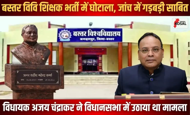 रायपुर Bastar University Teacher Bharti Scam: बस्तर के शहीद महेंद्र कर्मा विश्वविद्यालय में शिक्षकों की भर्ती में अनियमितताओं की पुष्टि हो गई है। जांच समिति ने अपनी रिपोर्ट उच्च शिक्षा विभाग को सौंप दी है। चौंकाने वाली बात यह है कि जांच पूरी होने से पहले ही चयनित शिक्षकों ने ज्वाइनिंग दे दी थी। अब रिपोर्ट के आधार पर जिन नियुक्तियों में गड़बड़ी पाई गई है, उन्हें रद्द करने की तैयारी है।