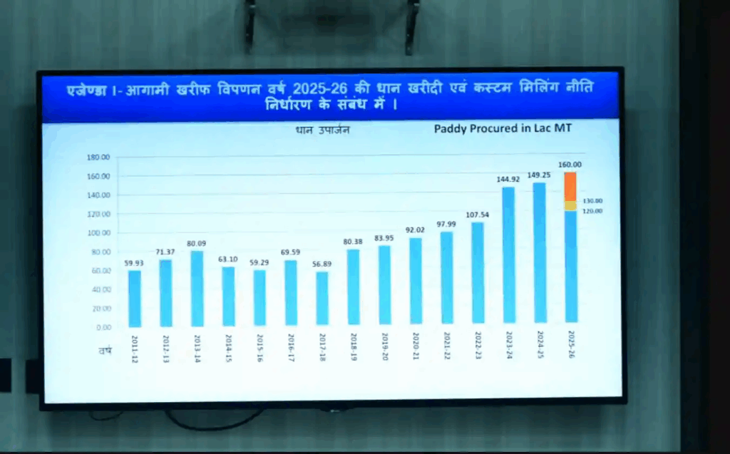 रायपुर: छत्तीसगढ़ में खरीफ विपणन वर्ष 2025-26 की धान खरीदी को लेकर शुक्रवार को मंत्रालय महानदी भवन में हुई मंत्रिमंडलीय उप समिति की बैठक में कई बड़े निर्णय लिए गए। बैठक की अध्यक्षता खाद्य मंत्री दयालदास बघेल ने की। इसमें तय हुआ कि किसानों का पंजीकरण अब एग्रीस्टेक और एकीकृत किसान पोर्टल पर किया जाएगा और सीमावर्ती जिलों में धान की तस्करी रोकने के लिए स्पेशल टीम का गठन किया जाएगा।