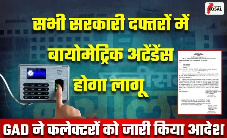Biometric Attendance: छत्तीसगढ़ के सभी सरकारी दफ्तरों में आधार-आधारित बायोमेट्रिक अटेंडेंस अनिवार्य, GAD ने जारी किया आदेश