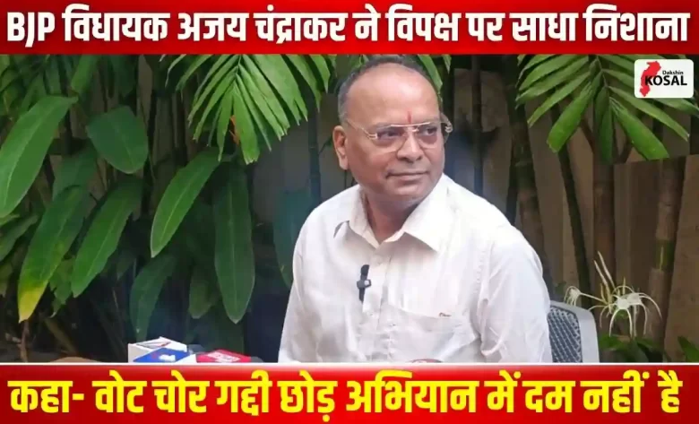 रायपुर: छत्तीसगढ़ में 4 नवंबर से विशेष गहन पुनरीक्षण के तहत घर-घर गणना चरण की शुरुआत होने जा रही है। इस बीच, कांग्रेस द्वारा प्रक्रिया पर उठाए जा रहे सवालों और उनके ‘वोट चोर गद्दी छोड़‘ अभियान पर भाजपा विधायक अजय चंद्राकर ने कड़ा बयान दिया है। उन्होंने कहा कि SIR (विशेष गहन पुनरीक्षण) निर्वाचन आयोग की नियमित प्रक्रिया है और कांग्रेस के द्वारा चलाया जा रहा अभियान ‘वोट चोर गद्दी छोड़’ में कोई दम नहीं है।