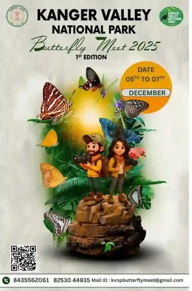 प्रकृति प्रेमियों और तितली विशेषज्ञों के लिए यह एक मनमोहक अवसर है। छत्तीसगढ़ सरकार पहली बार कांगेर घाटी राष्ट्रीय उद्यान, बस्तर में 3 दिवसीय ‘कांगेर वैली बटरफ्लाई मीट 2025’ का आयोजन करने जा रही है। यह शिविर 5 से 7 दिसंबर तक चलेगा। ‘जंगल का जीवित काव्य’ कही जाने वाली कांगेर घाटी अपनी अद्भुत जैव विविधता और रंग-बिरंगी तितलियों के लिए प्रसिद्ध है। इस आयोजन से वन्यजीव प्रेमियों को प्रकृति के करीब आने और बस्तर पर्यटन को नया आयाम प्रदान करने का अवसर मिलेगा।