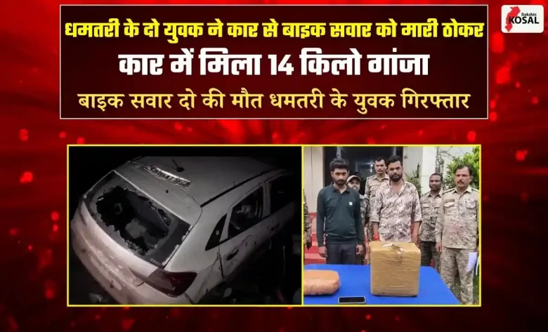 कोंडागांव: Kondagaon News: जिले में NH-30 पर रविवार देर शाम बड़ा हादसा हुआ। एक तेज रफ्तार बलेनो कार ने बाइक सवार दो युवकों को जोरदार टक्कर मार दी, जिससे दोनों की मौके पर ही मौत हो गई। हादसे के बाद जांच में कार की डिक्की से 14 किलो गांजा बरामद हुआ। पुलिस ने धमतरी जिले के दो युवकों को गिरफ्तार कर लिया है।