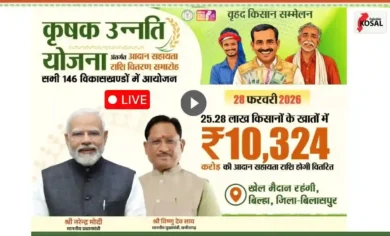 Live: किसानों को होली का गिफ्ट: सीएम विष्णुदेव साय ट्रांसफर कर रहे है धान के बोनस का 10,324 करोड़ रुपये, देखिये सीधा प्रसारण