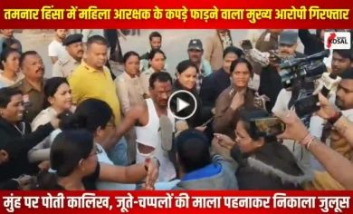 VIDEO: तमनार हिंसा मामले में महिला आरक्षक की वर्दी फाड़ने वाला मुख्य आरोपी गिरफ्तार, कालिख पोतकर और चप्पलों की माला पहनाकर निकाला जुलूस