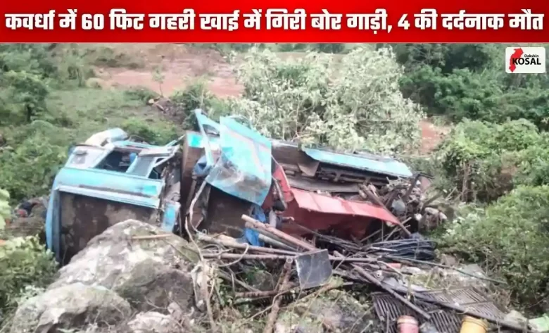 CG Borewell Truck Accident: कवर्धा जिले के कुकदूर थाना क्षेत्र में एक बोरवेल ट्रक 60 फीट गहरी खाई में गिर गया, जिससे मौके पर ही तीन लोगों की मौत हो गई और चार गंभीर रूप से घायल हो गए। हादसे के वक्त ट्रक में कुल 9 लोग सवार थे।