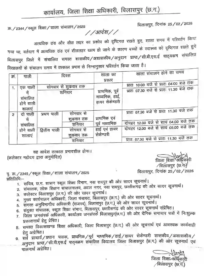 जिन क्षेत्रों में स्कूल केवल एक शिफ्ट या एक पाली में संचालित होते हैं, वहां समय को लेकर स्पष्ट निर्देश दिए गए हैं। अब सोमवार से शुक्रवार तक स्कूल सुबह 10 बजे शुरू होंगे और शाम 4 बजे छुट्टी होगी। शनिवार के दिन बच्चों को जल्दी स्कूल पहुंचना होगा क्योंकि इस दिन क्लास सुबह 7.30 बजे से 11.30 बजे तक ही संचालित की जाएगी। यह व्यवस्था तत्काल प्रभाव से लागू कर दी गई है ताकि पढ़ाई का निर्धारित कोटा पूरा किया जा सके।