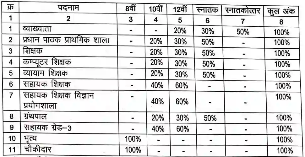 पद अनुसार न्यूनतम योग्यता (10वीं से स्नातकोत्तर तक)