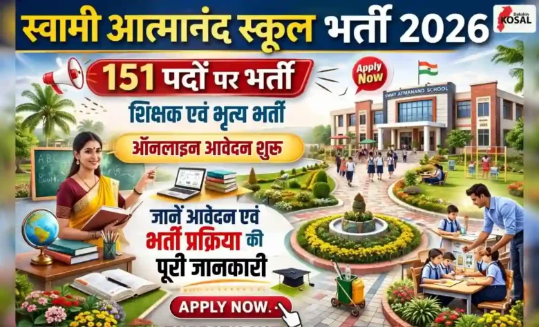छत्तीसगढ़ शासन की स्वामी आत्मानंद उत्कृष्ट अंग्रेजी माध्यम विद्यालय योजना के अंतर्गत रायपुर जिले में संचालित 31 विद्यालयों में विभिन्न पदों पर संविदा भर्ती के लिए ऑनलाइन आवेदन प्रक्रिया शुरू हो चुकी है। इस भर्ती के तहत व्याख्याता, शिक्षक, सहायक शिक्षक, कंप्यूटर शिक्षक, ग्रंथपाल, सहायक ग्रेड-03, भृत्य, चौकीदार सहित कुल 151 पदों पर नियुक्ति की जाएगी। आवेदन प्रक्रिया ऑनलाइन (Google Form) के माध्यम से की जा रही है।
