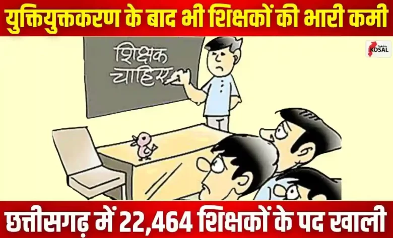 छत्तीसगढ़ में युक्तियुक्तकरण (rationalisation) के बाद भी सरकारी स्कूलों में 22,464 शिक्षकों के पद रिक्त हैं, जिससे कक्षाओं और पढ़ाई पर गंभीर असर पड़ रहा है। प्राइमरी में 7,957, मिडिल में 7,734 और हाई/हायर सेकेंडरी में 6,773 पद खाली हैं। विशेषज्ञों का मानना है कि स्थायी भर्ती, संविदात्मक नियुक्ति और प्रशिक्षण ही इस समस्या का समाधान कर सकते हैं।