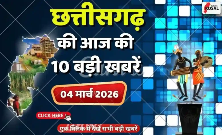 CG Top 10 News Today: छत्तीसगढ़ की सभी बड़ी और छोटी खबरें रोजाना हमारी नजर में रहती हैं। दक्षिण कोसल के विशेष सेगमेंट ‘CG की 10 बड़ी खबरें’ में हम आपको समाचार जगत की हर गतिविधि का अपडेट सरल और सहज भाषा में प्रदान करेंगे। तो आइए, पत्रकारिता की इस दुनिया में बने रहें और छत्तीसगढ़ की हर ताजातरीन खबर से अपनी जानकारी को और विस्तृत करे।