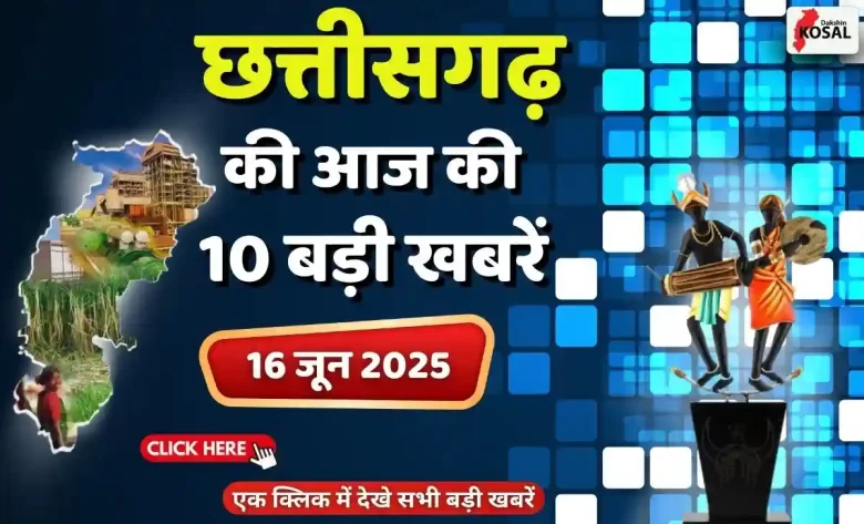 CG Top 10 news Today: छत्तीसगढ़ की सभी बड़ी और छोटी खबरें रोजाना हमारी नजर में रहती हैं। दक्षिण कोसल के विशेष सेगमेंट ‘CG की 10 बड़ी खबरें’ में हम आपको समाचार जगत की हर गतिविधि का अपडेट सरल और सहज भाषा में प्रदान करेंगे। तो आइए, पत्रकारिता की इस दुनिया में बने रहें और छत्तीसगढ़ की हर ताजातरीन खबर से अपनी जानकारी को और विस्तृत करें।
