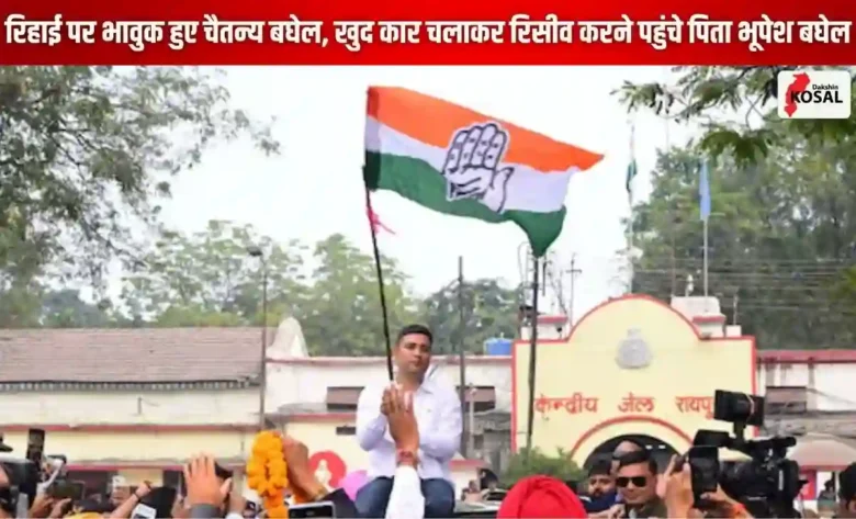 रायपुर: छत्तीसगढ़ के बहुचर्चित शराब घोटाला मामले में जेल में बंद पूर्व मुख्यमंत्री भूपेश बघेल के बेटे चैतन्य बघेल शनिवार को रायपुर सेंट्रल जेल से रिहा हो गए। हाईकोर्ट से जमानत मिलने के बाद उनकी रिहाई की प्रक्रिया पूरी की गई। जेल के बाहर नजारा बेहद भावुक था, जब खुद पूर्व मुख्यमंत्री भूपेश बघेल कार चलाकर अपने बेटे को रिसीव करने पहुंचे। जेल की दहलीज से बाहर निकलते ही चैतन्य बघेल ने कहा कि आज उनके बेटे का जन्मदिन है और इस खास मौके पर परिवार से मिलना उनके लिए किसी भी अन्य खुशी से बढ़कर है। 18 जुलाई से सलाखों के पीछे रहे चैतन्य का कांग्रेस कार्यकर्ताओं ने आतिशबाजी और नारों के साथ जोरदार स्वागत किया।