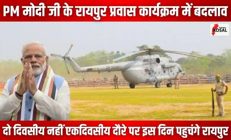 प्रधानमंत्री मोदी के रायपुर प्रवास कार्यक्रम में बदलाव: इस दिन एकदिवसीय दौरे पर पहुंचेंगे रायपुर