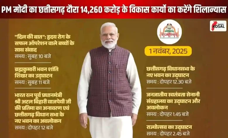 प्रधानमंत्री मोदी छत्तीसगढ़ राज्य के गठन के 25 वर्ष पूरे होने के उपलक्ष्य में आयोजित छत्तीसगढ़ रजत महोत्सव में हिस्सा लेंगे