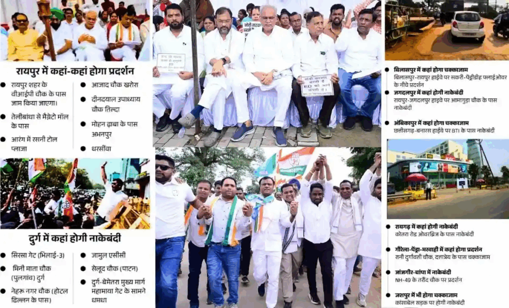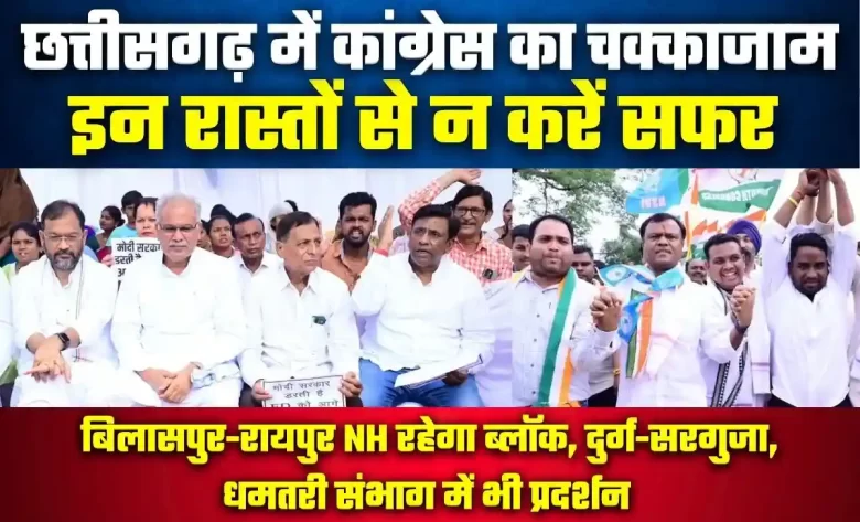 CG Congress Protest: छत्तीसगढ़ में कांग्रेस का चक्काजाम: पूरे राज्य में आर्थिक नाकेबंदी, इन मार्गों पर दिखेगा चक्काजाम का असर