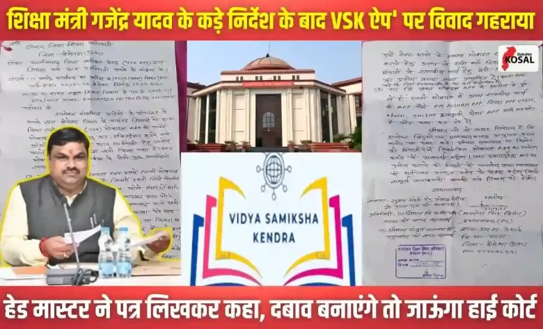 रायपुर: VKS App Controversy: छत्तीसगढ़ में शिक्षा विभाग के ‘विद्या समीक्षा केंद्र (VSK)’ मोबाइल ऐप को लेकर शिक्षकों और सरकार के बीच विवाद गहराता जा रहा है। स्कूल शिक्षा मंत्री गजेंद्र यादव के कड़े निर्देशों के बाद अब शिक्षकों की तरफ से तीखी प्रतिक्रियाएं सामने आने लगी हैं। इसी कड़ी में बेमेतरा जिले के एक हेड मास्टर ने जिला शिक्षा अधिकारी (DEO) को पत्र लिखकर ऐप की अनिवार्यता पर कड़ी आपत्ति जताई है। यह पत्र अब सोशल मीडिया पर वायरल हो गया है, जिससे पूरे शिक्षा जगत में हलचल मच गई है।