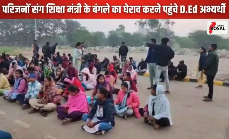 राजधानी रायपुर में सहायक शिक्षक भर्ती प्रक्रिया को पूरा करने की मांग को लेकर D.Ed पास युवाओं का गुस्सा फूट पड़ा है। बुधवार को बड़ी संख्या में अभ्यर्थी अपने परिवार के सदस्यों और छोटे बच्चों के साथ नया रायपुर स्थित स्कूल शिक्षा मंत्री गजेंद्र यादव के बंगले का घेराव करने पहुंचे। अभ्यर्थियों का कहना है कि वे महीनों से अपनी जायज मांग को लेकर भटक रहे हैं, लेकिन सरकार की ओर से केवल आश्वासन मिल रहा है। इससे पहले भी वे मंत्री के निवास का घेराव कर चुके हैं, लेकिन कोई ठोस नतीजा नहीं निकला।