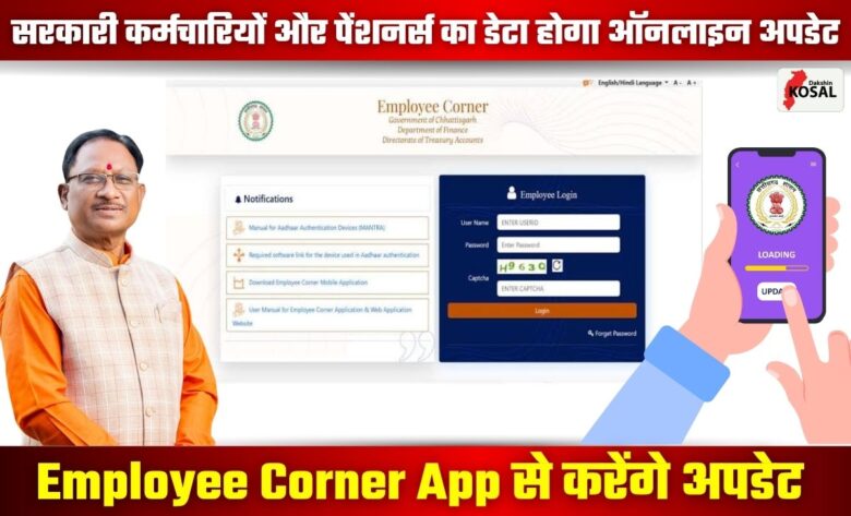 Employee Corner App: छत्तीसगढ़ सरकार ने अब सरकारी कामकाज को और पारदर्शी बनाने की दिशा में बड़ा डिजिटल कदम उठाया है। प्रदेश के 5 लाख से ज्यादा सरकारी कर्मचारियों और पेंशनर्स का डेटा अब ऑनलाइन किया जा चुका है। इसके साथ ही एक नया मोबाइल ऐप और वेब पोर्टल लॉन्च किया गया है, जिसका नाम है – ‘एम्प्लाई कॉर्नर’।