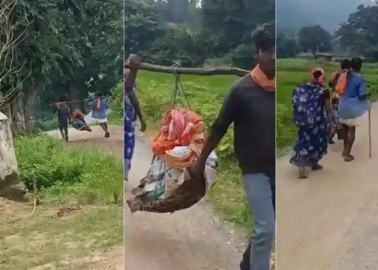 सूरजपुर: छत्तीसगढ़ के सूरजपुर जिले के प्रतापपुर विकासखंड से एक चौंकाने वाली घटना सामने आई है। यहां एक बुजुर्ग मरीज की तबीयत बिगड़ने पर परिजनों ने एंबुलेंस की मांग की, लेकिन सुविधा उपलब्ध नहीं हो सकी। मजबूर होकर परिवार ने मरीज को एक बड़ी टोकरी में बैठाया और लकड़ी के सहारे डोली बनाकर कंधों पर उठाते हुए अस्पताल तक पहुंचाया।