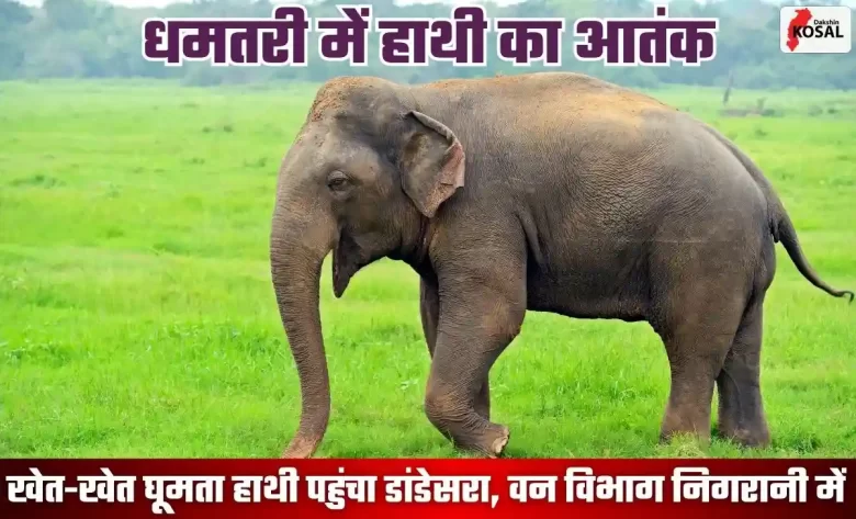 Elephant in Dhamtari: धमतरी जिले में गांव-गांव, खेत-खेत भटकता हाथी डांडेसरा पहुंचा, वन विभाग की टीम तैनात
