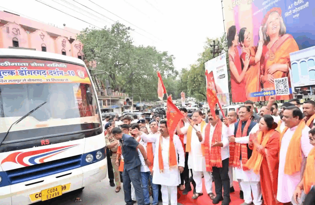 रायपुर: शारदीय नवरात्र के मौके पर मां बम्लेश्वरी के भक्तों के लिए खास इंतजाम किया गया है। मुख्यमंत्री विष्णु देव साय ने मंगलवार को रायपुर के आकाशवाणी चौक स्थित मां काली मंदिर से डोंगरगढ़ जाने वाली नि:शुल्क बस सेवा की शुरुआत की। इस सेवा से श्रद्धालुओं को बिना खर्च किए रायपुर से डोंगरगढ़ तक दर्शन के लिए पहुंचने की सुविधा मिलेगी।