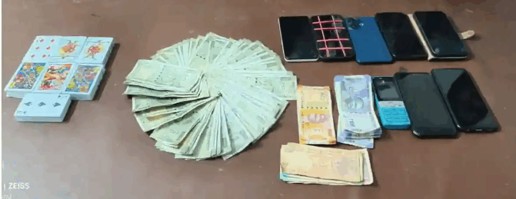 पुलिस ने पकड़े गए जुआरियों के पास से भारी मात्रा में नकदी और अन्य सामग्री जब्त की है।