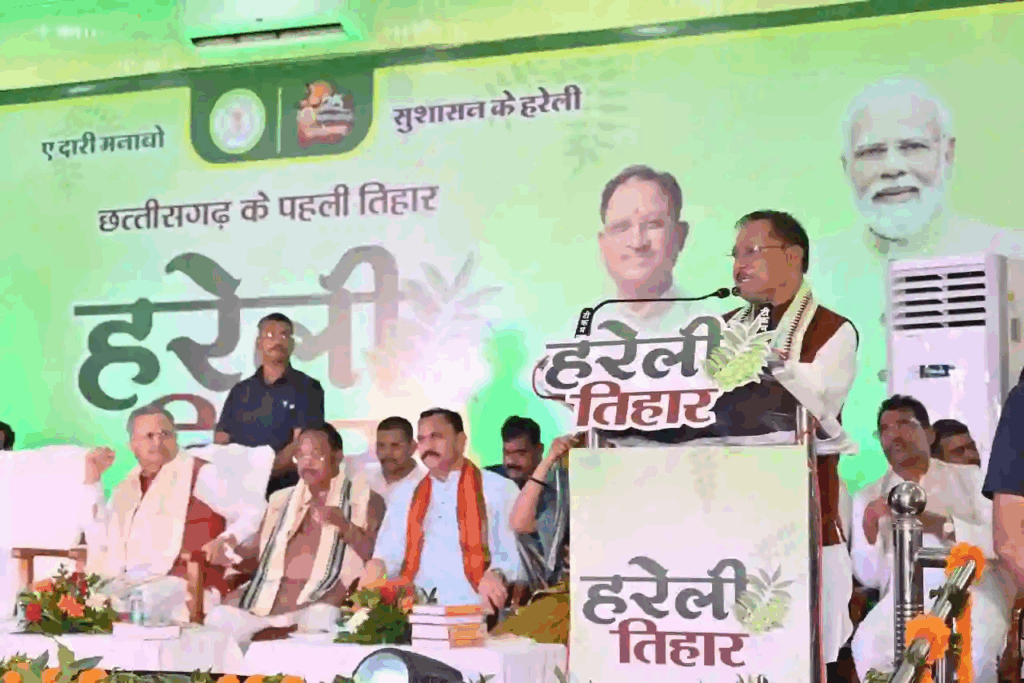 छत्तीसगढ़ की सांस्कृतिक अस्मिता और कृषि परंपराओं का प्रतीक हरेली तिहार इस वर्ष मुख्यमंत्री श्री विष्णु देव साय के निवास परिसर में अत्यंत हर्षाेल्लास और गरिमा के साथ मनाया गया। इस अवसर पर राज्य की समृद्ध विरासत, पारंपरिक कृषि यंत्रों, लोक परिधानों, खानपान और आधुनिक कृषि तकनीकों का समन्वय एक अद्भुत नजारे के रूप में सामने आया। कार्यक्रम स्थल को पारंपरिक छत्तीसगढ़ी रंग-रूप में सजाया गया था, जहां ग्रामीण परिधान पहने अतिथि, कलाकार और आमजन लोक संस्कृति में रमे हुए नजर आए।