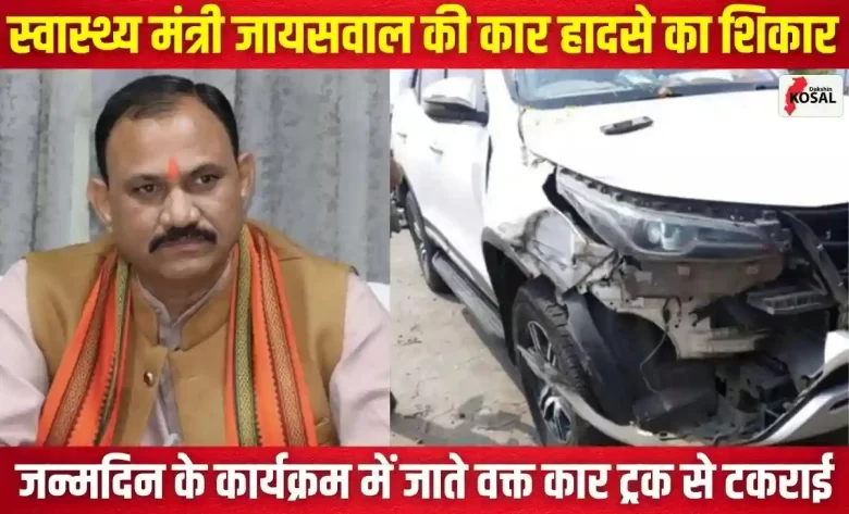 चिरमिरी: Road Accident: छत्तीसगढ़ के स्वास्थ्य मंत्री श्याम बिहारी जायसवाल बुधवार को सड़क हादसे में सुरक्षित बच गए। जानकारी के मुताबिक, मंत्री अपने जन्मदिन पर आयोजित कार्यक्रम में शामिल होने चिरमिरी जा रहे थे, तभी उनकी कार एक ट्रक से टकरा गई।