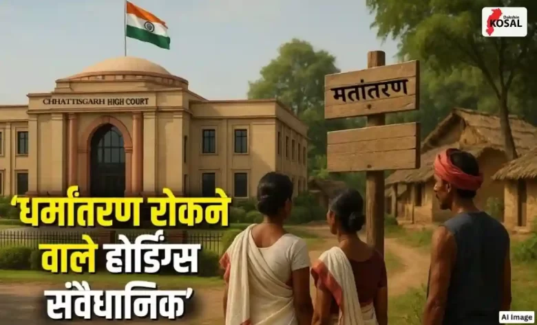 रायपुर: CG High Court: छत्तीसगढ़ हाईकोर्ट ने कांकेर जिले के गांवों में धर्मांतरण रोकने के लिए ग्राम सभाओं द्वारा लगाए गए होर्डिंग्स को लेकर दायर याचिका पर बड़ा फैसला सुनाया है। कोर्ट ने स्पष्ट किया कि जबरन या प्रलोभन देकर किए जा रहे मतांतरण को रोकना गंभीर सामाजिक चिंता का विषय है, और इसलिए ऐसे होर्डिंग्स को असंवैधानिक नहीं कहा जा सकता।