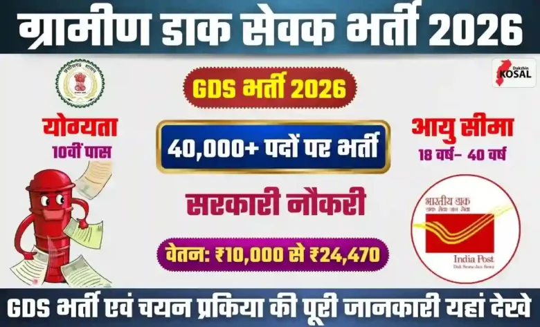 India Post GDS: सरकारी नौकरी की तैयारी कर रहे 10वीं पास युवाओं के लिए बड़ी खुशखबरी है। भारतीय डाक विभाग (India Post) वर्ष 2026 में ग्रामीण डाक सेवक (GDS) के 40,000 से अधिक पदों पर बंपर भर्ती करने जा रहा है। मीडिया रिपोर्ट्स के अनुसार, GDS भर्ती 2026 का नोटिफिकेशन जनवरी 2026 के पहले या दूसरे सप्ताह में जारी किया जा सकता है।