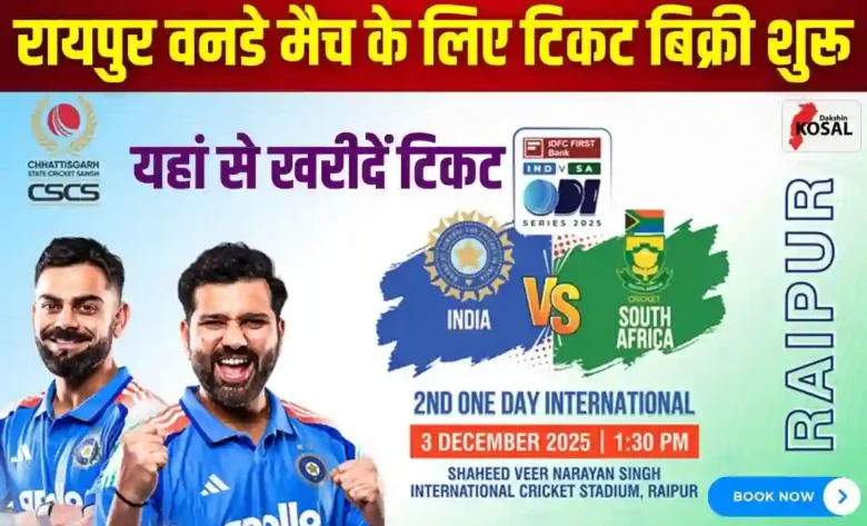 India vs South Africa 2nd Odi Match Raipur: भारत और दक्षिण अफ्रीका के बीच दूसरा वनडे मैच 3 दिसंबर 2025 को छत्तीसगढ़ की राजधानी रायपुर में खेला जाएगा। यह बहुप्रतीक्षित मुकाबला नवा रायपुर के शहीद वीर नारायण सिंह अंतरराष्ट्रीय क्रिकेट स्टेडियम में दोपहर 1:30 बजे से शुरू होगा। इस महामुकाबले के लिए टिकटों की बिक्री आज यानी 22 नवंबर 2025 से शुरू हो रही है। क्रिकेट प्रेमियों के लिए ऑनलाइन टिकट विंडो आज शाम 5 बजे से खुल जाएगी। मैच की तैयारियों को अंतिम रूप दिया जा रहा है और कुल 46 हजार टिकट बिक्री के लिए रखे गए हैं।