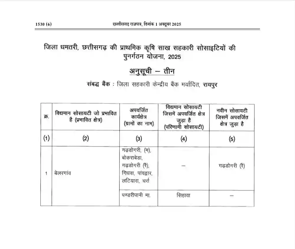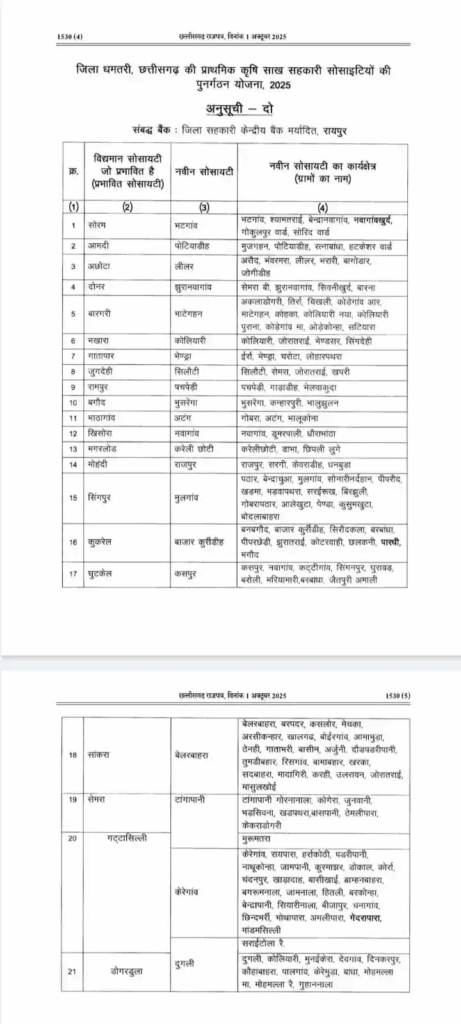 कुरूद विकासखंड के इन 7 ग्रामों में खुलेंगी नई सहकारी सोसायटियां