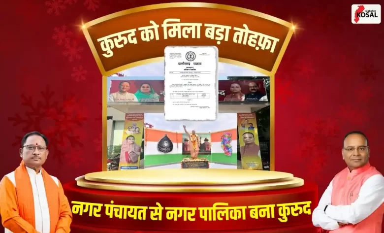 1984 में ग्राम पंचायत से नगर पंचायत बना कुरुद, अब करीब 41 साल बाद नगर पालिका बन गया है। इस निर्णय को प्रशासनिक बदलाव के साथ-साथ विकास के नए अवसर के रूप में देखा जा रहा है। नगर पंचायत अध्यक्ष ज्योति भानु चंद्राकर ने नगर परिषद की बैठक में पालिका निर्माण का प्रस्ताव रखा था, जिसे सभी पार्षदों ने सर्वसम्मति से पारित किया। इसके बाद विधायक अजय चंद्राकर ने इस प्रस्ताव को राज्य शासन तक पहुंचाया।