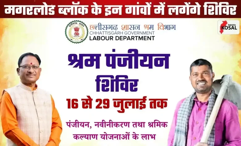 धमतरी। Labor Registration Camp: कलेक्टर अभिनाश मिश्रा के निर्देश पर जिले में श्रमिकों के पंजीयन, नवीनीकरण और अन्य सुविधाओं के लिए विशेष शिविर आयोजित किए जा रहे हैं। इसी क्रम में मगरलोड विकासखंड के विभिन्न गांवों में 16 जुलाई से 29 जुलाई तक श्रम पंजीयन शिविर लगाए जाएंगे।