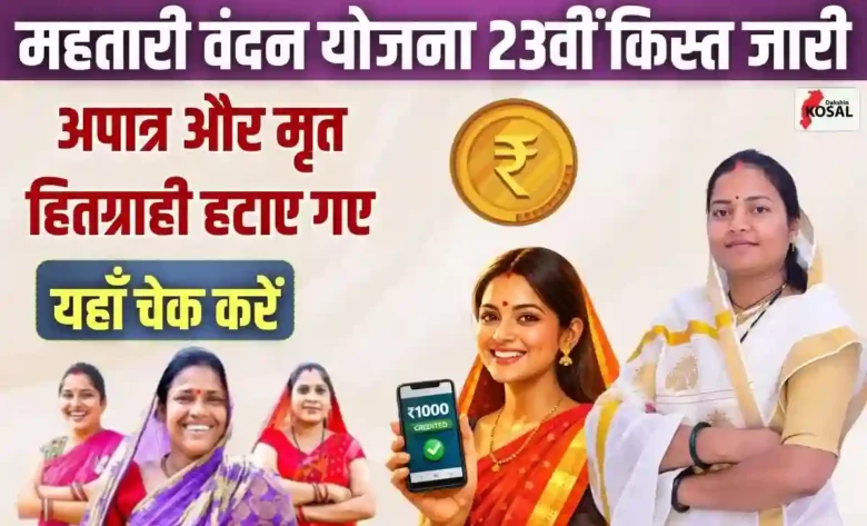 Mahtari Vandan Yojana 23th Kist 2026: छत्तीसगढ़ की महिलाओं के लिए नए साल का आगाज खुशियों भरा रहा है। राज्य सरकार ने महतारी वंदन योजना की 23वीं किस्त (जनवरी 2026) की राशि जारी कर दी है। महिला एवं बाल विकास विभाग द्वारा पात्र महिला हितग्राहियों के डीबीटी (DBT) सक्रिय बैंक खातों में 1000 रुपये की राशि भेज दी गई है। यह इस साल की पहली किस्त है, जिससे प्रदेश की लाखों महिलाएं लाभान्वित हुई हैं। हालांकि, विभाग ने स्पष्ट किया है कि अपात्र और मृत हितग्राहियों की छंटनी के बाद सूची को अपडेट किया गया है, ताकि केवल पात्र महिलाओं को ही योजना का लाभ मिल सके।