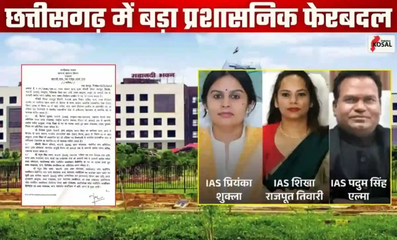 IAS शिखा राजपूत तिवारी (2008 बैच) को आयुक्त, चिकित्सा शिक्षा के पद से हटाकर सचिव, छत्तीसगढ़ राज्य निर्वाचन आयोग बनाया गया है। वहीं, IAS डॉ. प्रियंका शुक्ला (2009 बैच) को स्वास्थ्य विभाग से स्थानांतरित कर आयुक्त, समग्र शिक्षा नियुक्त किया गया है, साथ ही उन्हें पाठ्यपुस्तक निगम का अतिरिक्त प्रभार भी सौंपा गया है। IAS किरण कौशल (2009 बैच) को प्रबंध संचालक, मार्कफेड से हटाकर मंत्रालय में सचिव के पद पर पदस्थ किया गया है।