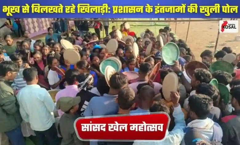 महासमुंद: जिला मुख्यालय के वन विभाग मैदान में आयोजित दो दिवसीय सांसद खेल महोत्सव अव्यवस्थाओं की भेंट चढ़ गया। महासमुंद लोकसभा क्षेत्र की 8 विधानसभाओं से आए लगभग 1155 खिलाड़ी पूरे दिन भोजन के लिए तरसते रहे। आलम यह था कि शाम 5 बजे तक खिलाड़ी मैदान में खाली पत्तल हाथ में लेकर अधिकारियों के खिलाफ नारेबाजी करते दिखे। जिला प्रशासन, खेल और शिक्षा विभाग की लापरवाही का अंदाजा इसी बात से लगाया जा सकता है कि इतने बड़े आयोजन में खिलाड़ियों के लिए भोजन की पर्याप्त व्यवस्था तक नहीं की गई थी। भारी हंगामे के बाद देर शाम पांच अलग-अलग किस्तों में जैसे-तैसे खाना तैयार कर परोसा गया।