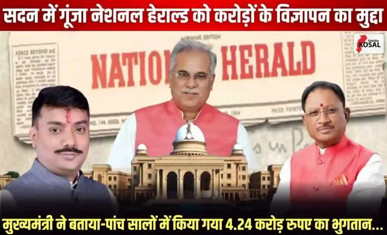 छत्तीसगढ़ विधानसभा के बजट सत्र में मंगलवार को विज्ञापनों के नाम पर सरकारी खजाने से हुए भुगतान का मामला गरमा गया। भाजपा विधायक सुशांत शुक्ला के एक सवाल के जवाब में मुख्यमंत्री विष्णुदेव साय ने सदन को बताया कि पिछली सरकार के दौरान नेशनल हेराल्ड और संडे नवजीवन जैसे प्रकाशनों को करोड़ों रुपये के विज्ञापन जारी किए गए थे। मुख्यमंत्री ने स्पष्ट किया कि अकेले नेशनल हेराल्ड को पांच साल की अवधि में 4.24 करोड़ रुपये का भुगतान किया गया है। इस खुलासे के बाद सत्ता पक्ष ने पिछली सरकार की विज्ञापन नीति पर गंभीर सवाल उठाए हैं और जांच की मांग तेज हो गई है।
