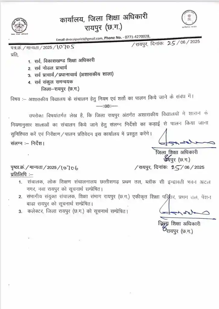 स्कूलों को निर्देश दिए गए हैं कि सत्र की शुरुआत में ही इन नियमों का पालन सुनिश्चित करें और नोडल प्राचार्य के माध्यम से अनुपालन प्रमाणपत्र DEO को सौंपें।