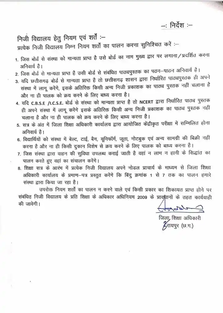 CG Private Books Ban: रायपुर के जिला शिक्षा अधिकारी (DEO) ने बड़ा फैसला लेते हुए जिले के सभी निजी स्कूलों में प्राइवेट पब्लिशर्स की किताबों के उपयोग पर पूर्ण प्रतिबंध लगा दिया है। नए आदेश के मुताबिक, CBSE/ICSE स्कूल अब केवल NCERT की किताबों से ही पढ़ा सकेंगे। छत्तीसगढ़ बोर्ड से संबद्ध स्कूलों को राज्य पाठ्यपुस्तक निगम की किताबें ही उपयोग करनी होंगी। इस आदेश का उल्लंघन करने पर शिक्षा के अधिकार अधिनियम 2009 के तहत सख्त कार्रवाई की चेतावनी भी दी गई है।