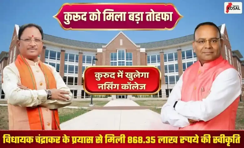 Kurud News: छत्तीसगढ़ के कुरूद क्षेत्र के लिए एक बड़ी सौगात मिली है। मुख्यमंत्री विष्णुदेव साय की सरकार और स्थानीय विधायक अजय चंद्राकर के प्रयासों से कुरूद में नर्सिंग महाविद्यालय के भवन निर्माण के लिए 868.35 लाख रुपये की प्रशासकीय स्वीकृति प्रदान की गई है। इस उपलब्धि के बाद क्षेत्र में उत्साह का माहौल है। ग्रामीणों और छात्र-छात्रों ने विधायक अजय चंद्राकर को इस स्वीकृति के लिए उनका आभार व्यक्त किया है।