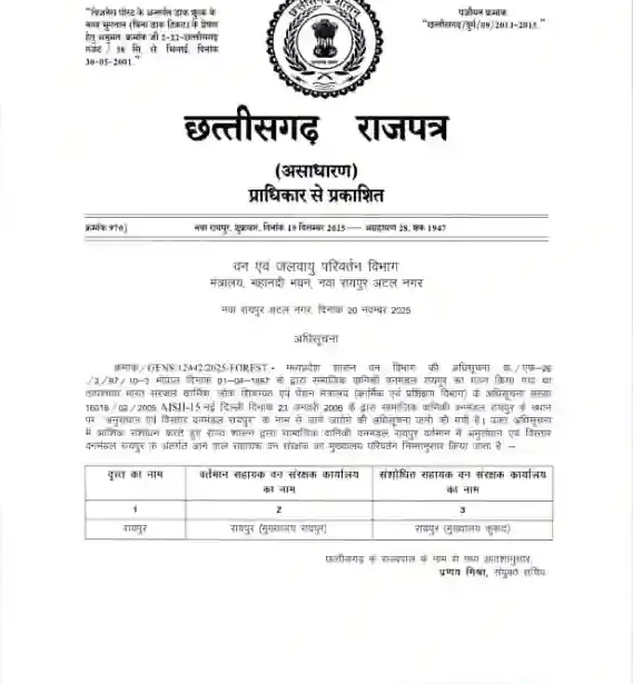 कुरूद विधानसभा के विधायक अजय चंद्राकर की लगातार कोशिशों के बाद क्षेत्र की जनता को एक बड़ी प्रशासनिक सौगात मिली है। राज्य सरकार के वन एवं जलवायु परिवर्तन विभाग ने रायपुर के सामाजिक वानिकी वनमंडल के अंतर्गत आने वाले सहायक वन संरक्षक का मुख्यालयअब कुरूद में भी स्थापित किया जायेगा। छत्तीसगढ़ राजपत्र में इस संबंध में आधिकारिक अधिसूचना भी जारी हो गई है। इस फैसले का सबसे बड़ा लाभ यह होगा कि अब क्षेत्र के लोगों को वन विभाग से जुड़े प्रशासनिक कार्यों के लिए राजधानी की दौड़ नहीं लगानी पड़ेगी। स्थानीय स्तर पर कार्यालय खुलने से फाइलों का निपटारा तेज होगा और आम जनता की पहुंच सीधे अधिकारियों तक हो सकेगी।